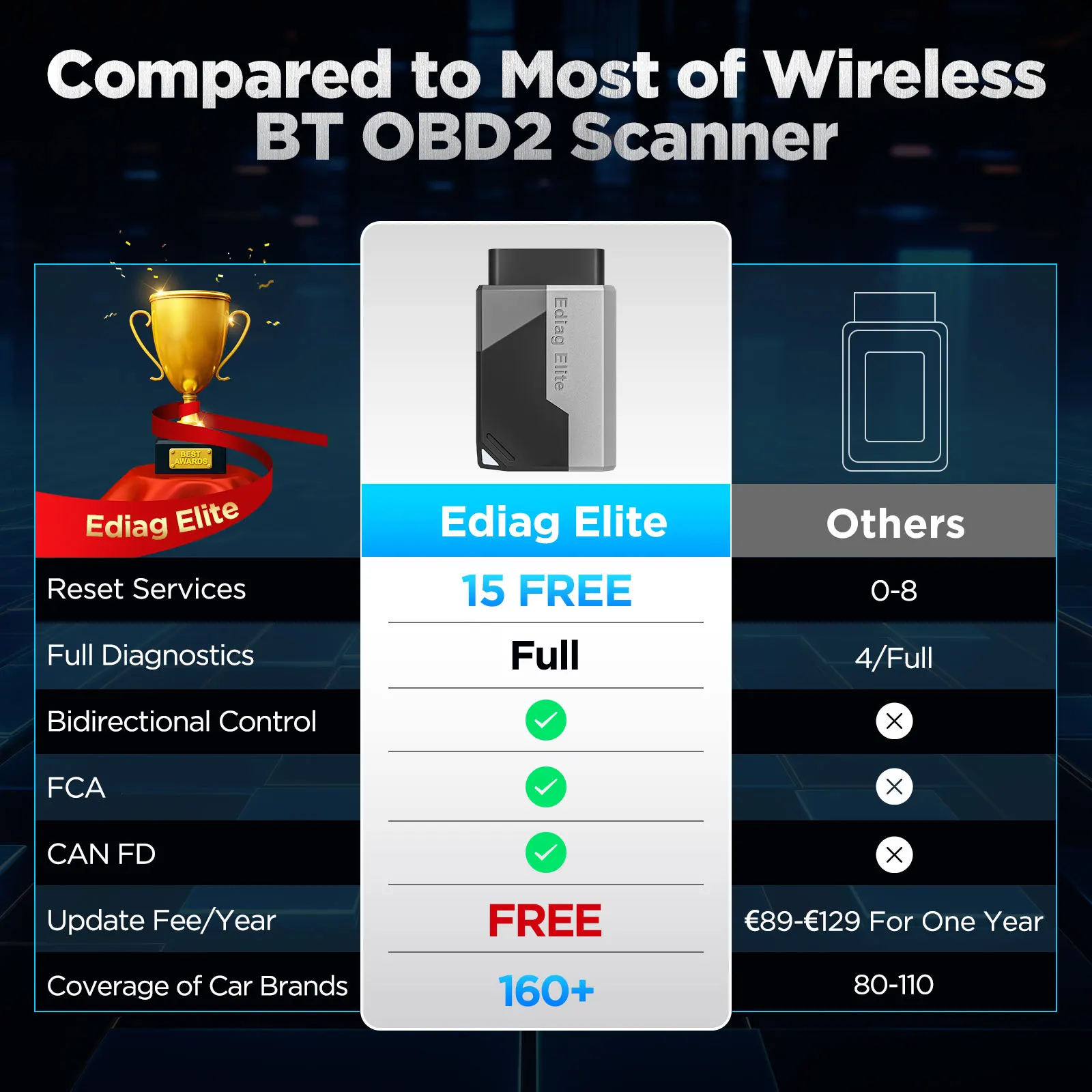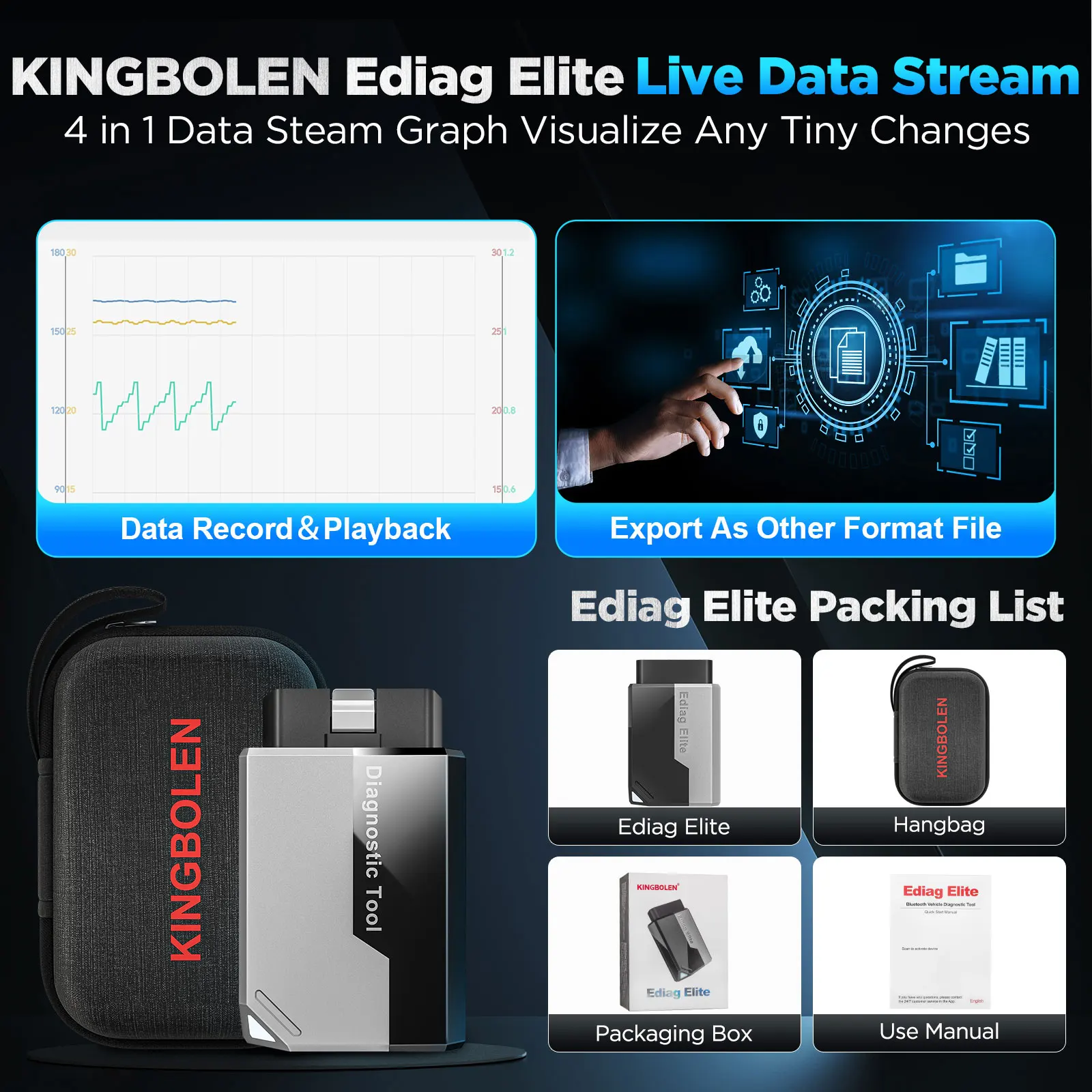 KINGBOLEN Ediag Elite Car Diagnostic Tool All Systems, Ediag Elite stands out with its game-changing Lifetime Updates—offering limitless access to top-tier 15+ reset services, bidirectional testing, and full-system diagnostic capabilities.