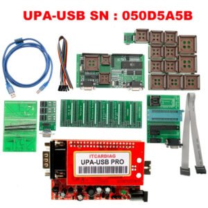 New Upa usb programmer is the full set with all adapters, The main Device can be directly connected to the Elrasoft.com UUSP (UPA-USB Serial Programmer) or by an optional DB9 male / female 1:1 extension cable. It’s equipped with an 40pin ZIF Socket for all narrow angles.